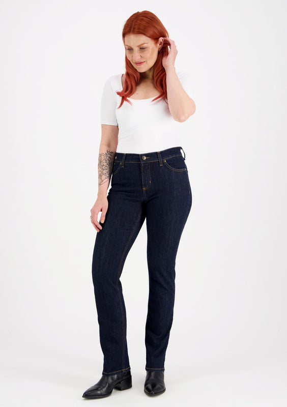 Carla Straight Fit -farkut Tummansininen on asiantuntevasti räätälöity O-vartalotyypille, tarjoten imartelevan siluetin suoralla lahkeella. Mukavuuden ja tyylin tarjoamiseksi suunnitellut farkut korostavat luonnollisia muotoja samalla kun ne säilyttävät tasapainoisen, virtaviivaisen ilmeen. Ihanteelliset jokapäiväiseen käyttöön, ne yhdistävät klassisen muotoilun istuvuuteen, joka tukee ja täydentää muotoasi.