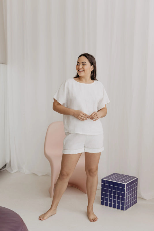 Löydä vaivaton mukavuus Jaunatis Women's Linen Pyjama Set - valmistettu 100 % OEKO-Tex-sertifioidusta balttilaisesta pellavasta, joka takaa hengittävän, ympärivuotisen käytön. Tässä harkitusti suunnitellussa setissä on oversized lyhythihainen toppi yhdistettynä joustaviin shortseihin, jotka sopivat täydellisesti levollisiin öihin ja rentoihin päiviin kotona. Keskipainoinen pellava (185 g/m²) tarjoaa kestävyyttä ilman tilaa, ja joustava vyötärö takaa turvallisen ja mukavan istuvuuden.